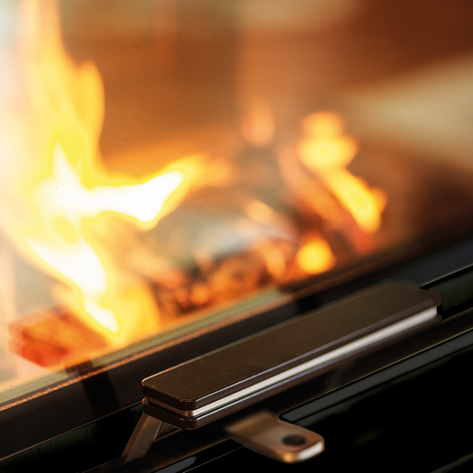 Die Technik der Scheibenspülung hilft der Glaskeramikscheibe beim Sauberbleiben. Durch ein raffiniertes Strömungssystem wird vorgewärmte Luft im Feuerraum punktgenau über die Feuersichtscheibe geführt. Dieser Luftstrom spült Russablagerungen auf der Scheibe wortwörtlich weg - die Scheibe bleibt sauber!